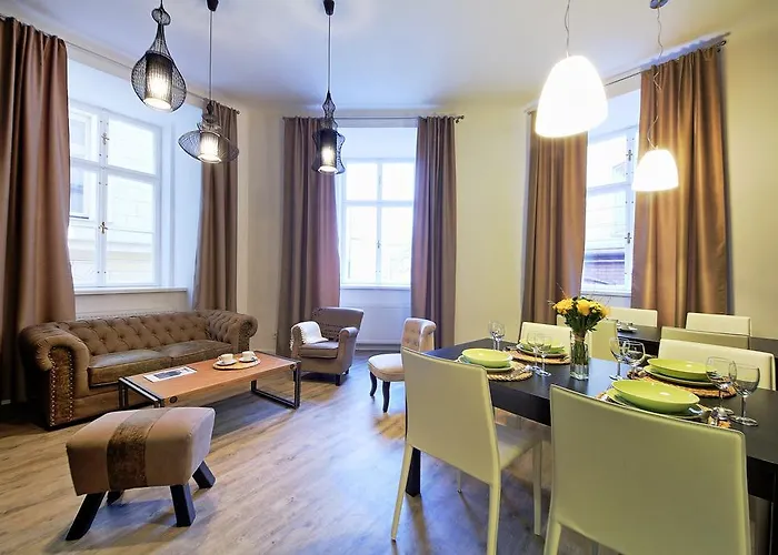 Das 0-Zimmer-Apartment Deluxe Apartment liegt im Stadtviertel Praha 01, der für seine historischen Sehenswürdigkeiten wie Lobkowitz Palais bekannt ist, und bietet ein Gepäckraum, der nur etwa 16 Gehminuten von liegt. Kkl Das Apartment mit einem Ausblick auf die Stadt garantiert die Sicherheit der Gäste durch einen Safe.