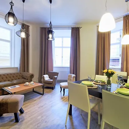 DeLuxe Apartment van 125 m^2 is op circa 5 minuten lopen van het Nationale Bibliotheek Clementinum gelegen en heeft uitzicht op de stad.